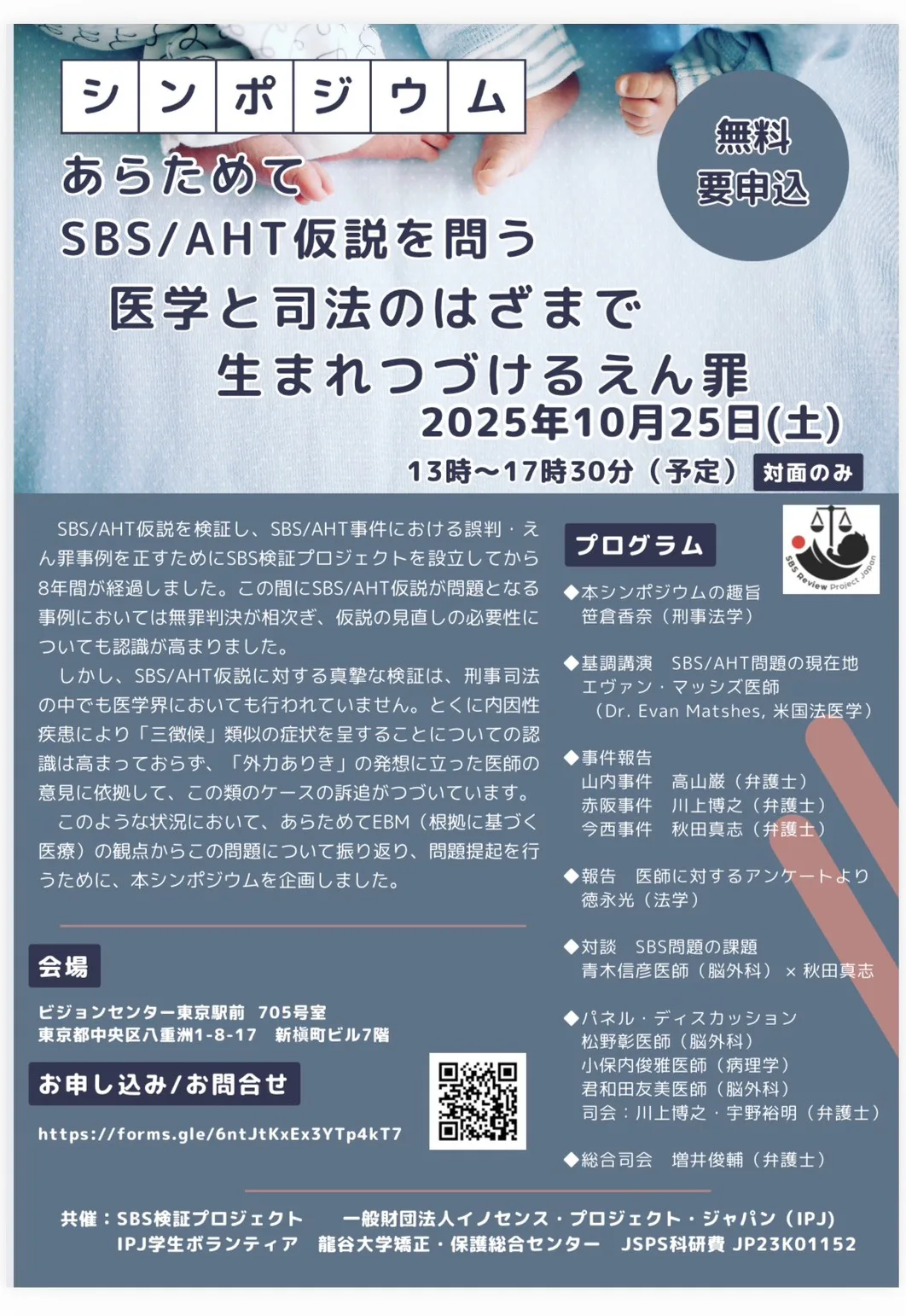 共催:SBS検証プロジェクト、一般財団法人イノセンス・プロジェクト・ジャパン(IPJ)、